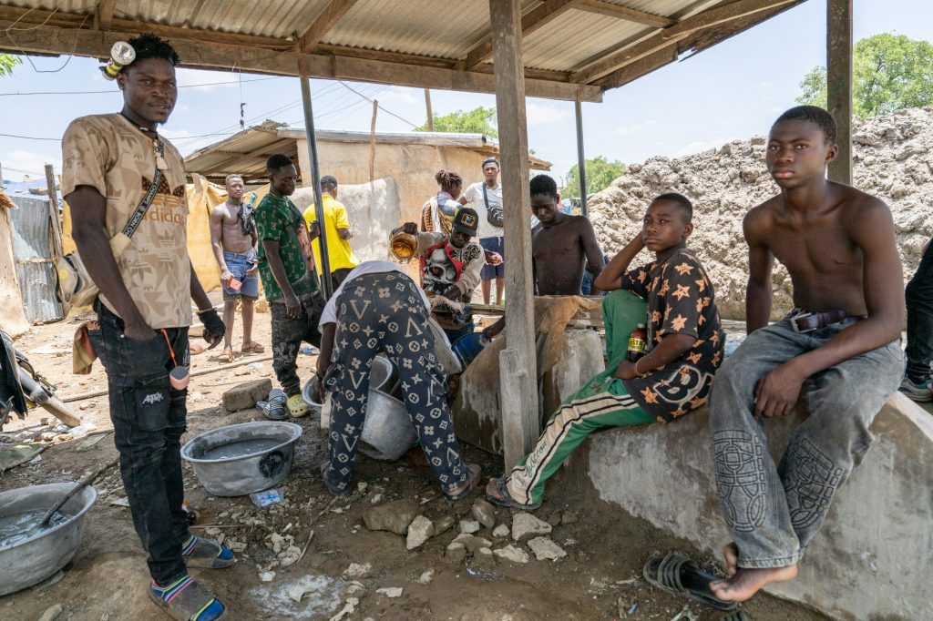 In Ghana s Upper East Region young galamsey miners gather around while their colleagues wash silt part of the laborious process of extracting small traces of gold