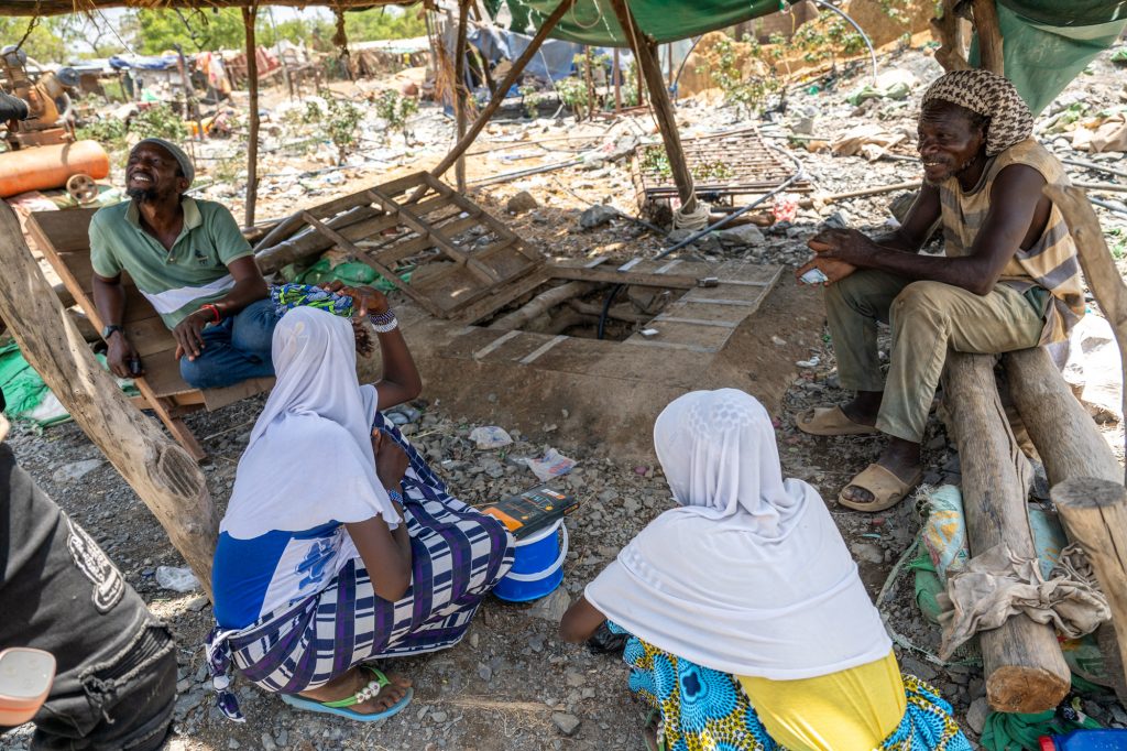 At a small-scale mining site in Ghana s Upper East Region two young girls sit beside Nana the pit owner right and Patrick the pit manager