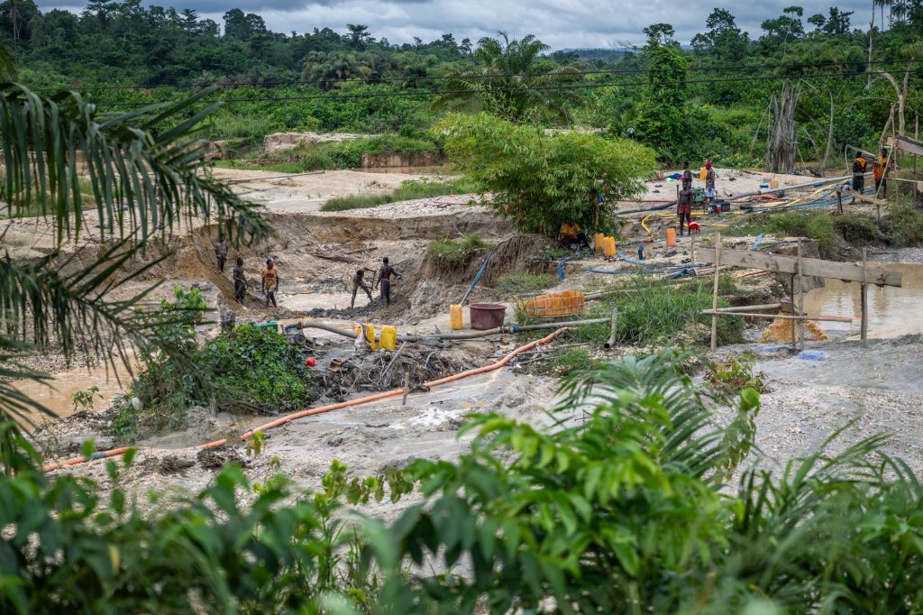 In Ghana s Ashanti Region galamsey miners extract gold by pumping water from an unregulated surface pit