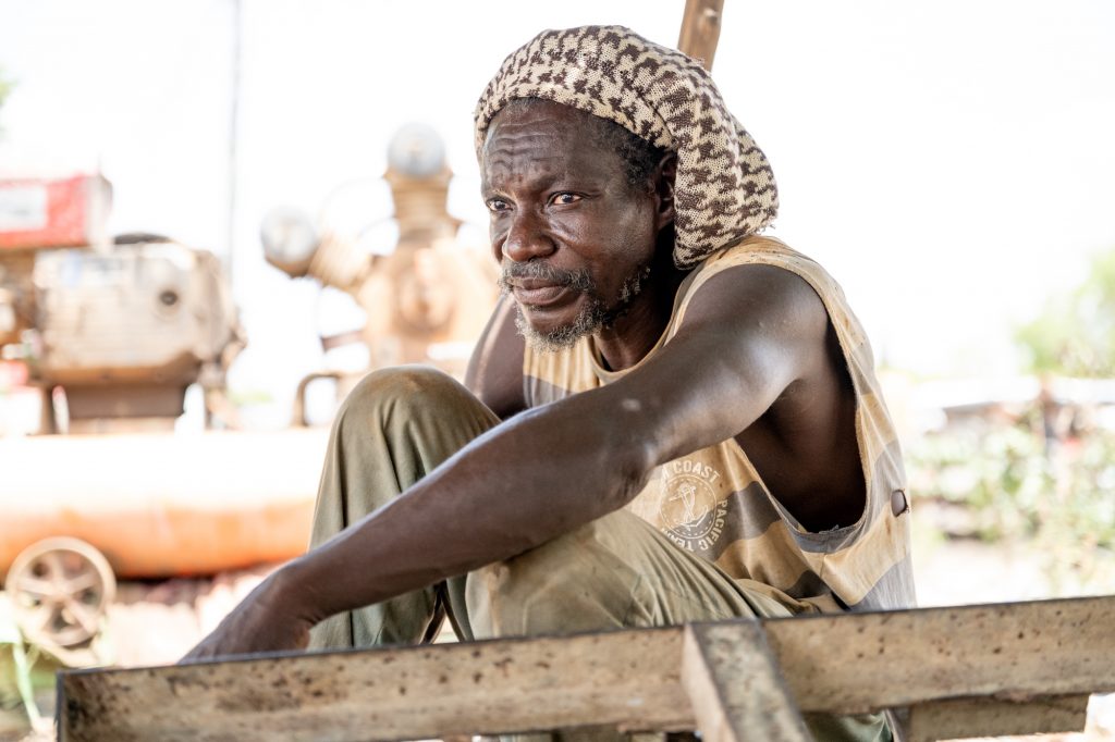 At a small-scale mining site in Ghana s Upper East Region two young girls sit beside Nana the pit owner right and Patrick the pit manager