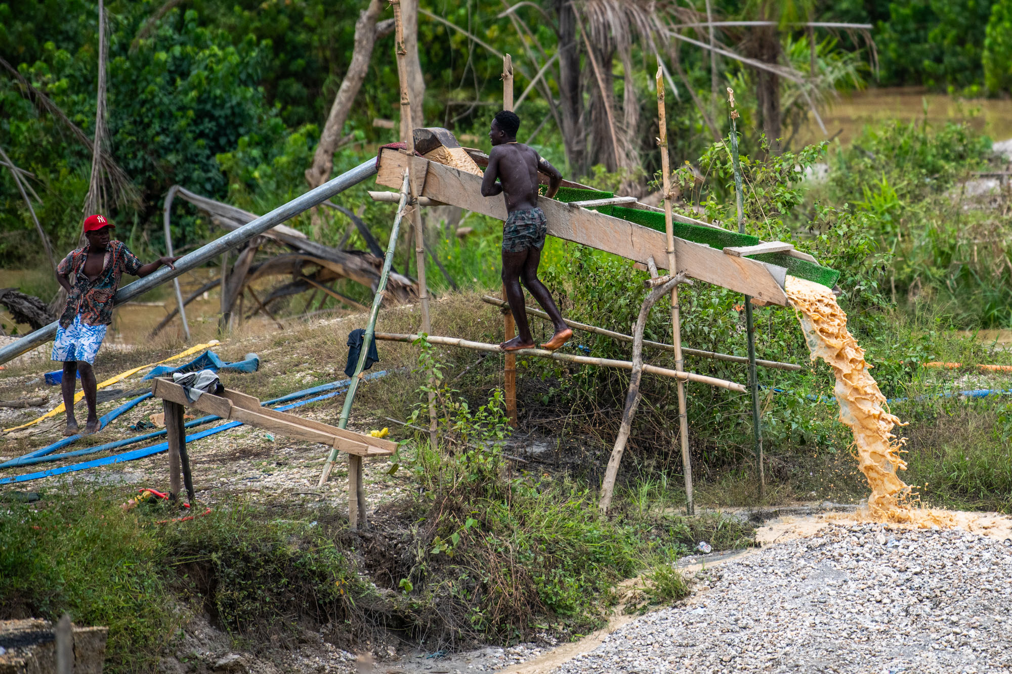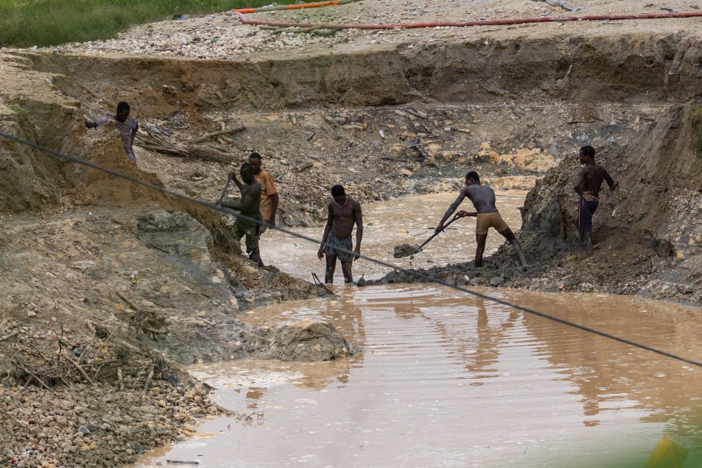 In Ghana s Ashanti Region galamsey miners extract gold by pumping water from an unregulated surface pit
