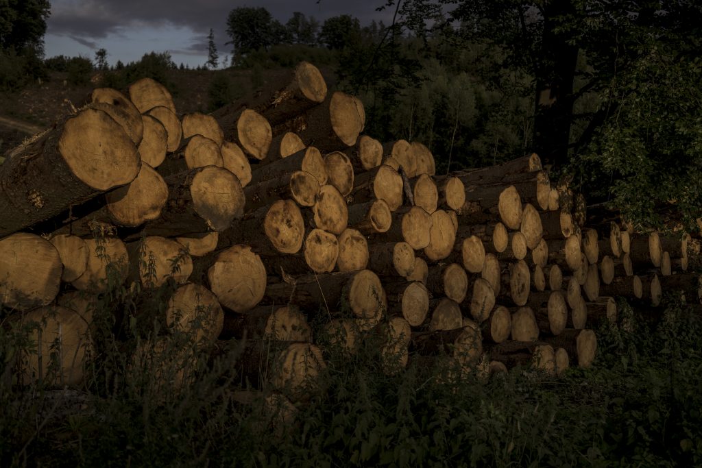 Cut spruces in Engelskirchen Germany on August 24 2020 Monoculture aggressive agriculture and the wood industry combined with extreme droughts and mild winters have led to severe forest dieback in Germany Non-native spruce trees along with native beech and oak are heavily affected Infected spruce plantations once planted by small-scale farmers as future investments for their families had to be cut 50 years too early due to bark beetle infestations With low wood prices and high logging costs profits were minimal and many trunks were shipped to China at a loss This deforestation contributed to the devastating 2021 floods br