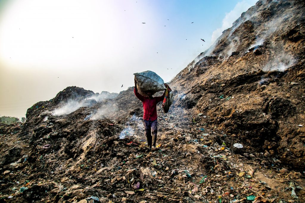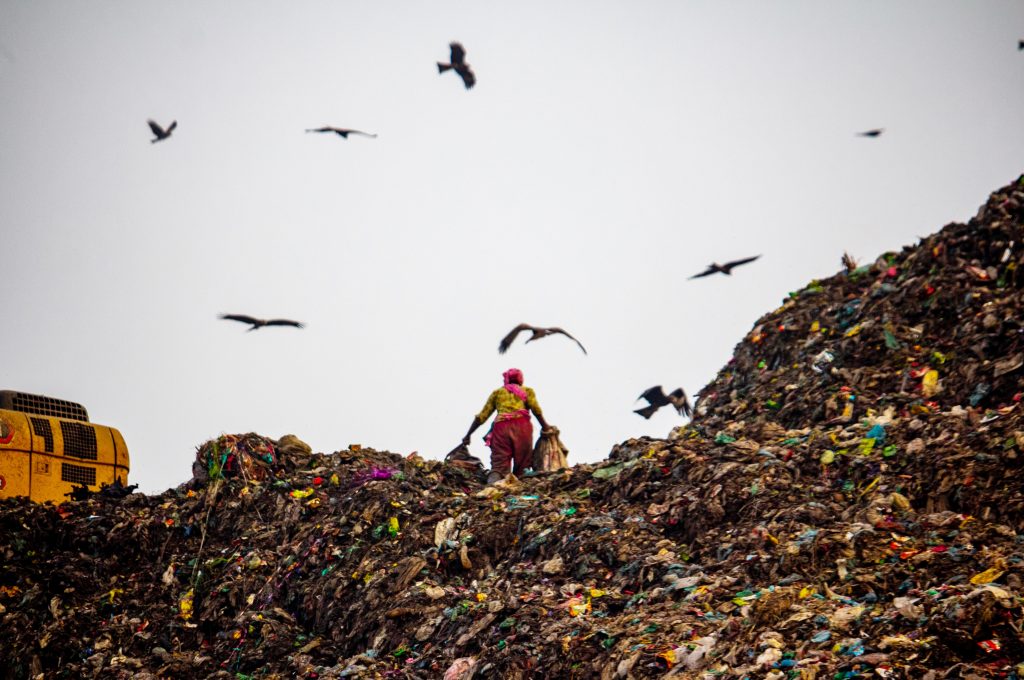 poor and helpless people come to collect paper,plastic, iron and various metal from this garbage.