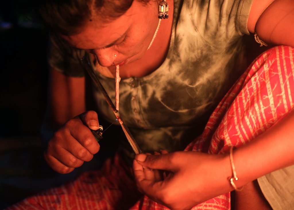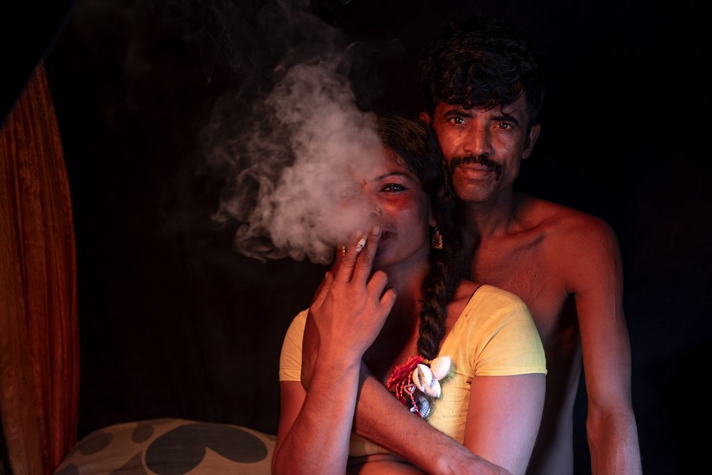 In the shadows of Banishanta Moyna turns to drugs blurring the lines between pain and pleasure survival and surrender Her body a battleground endures the harsh demands of a client mirroring the community s fight against relentless climate change
