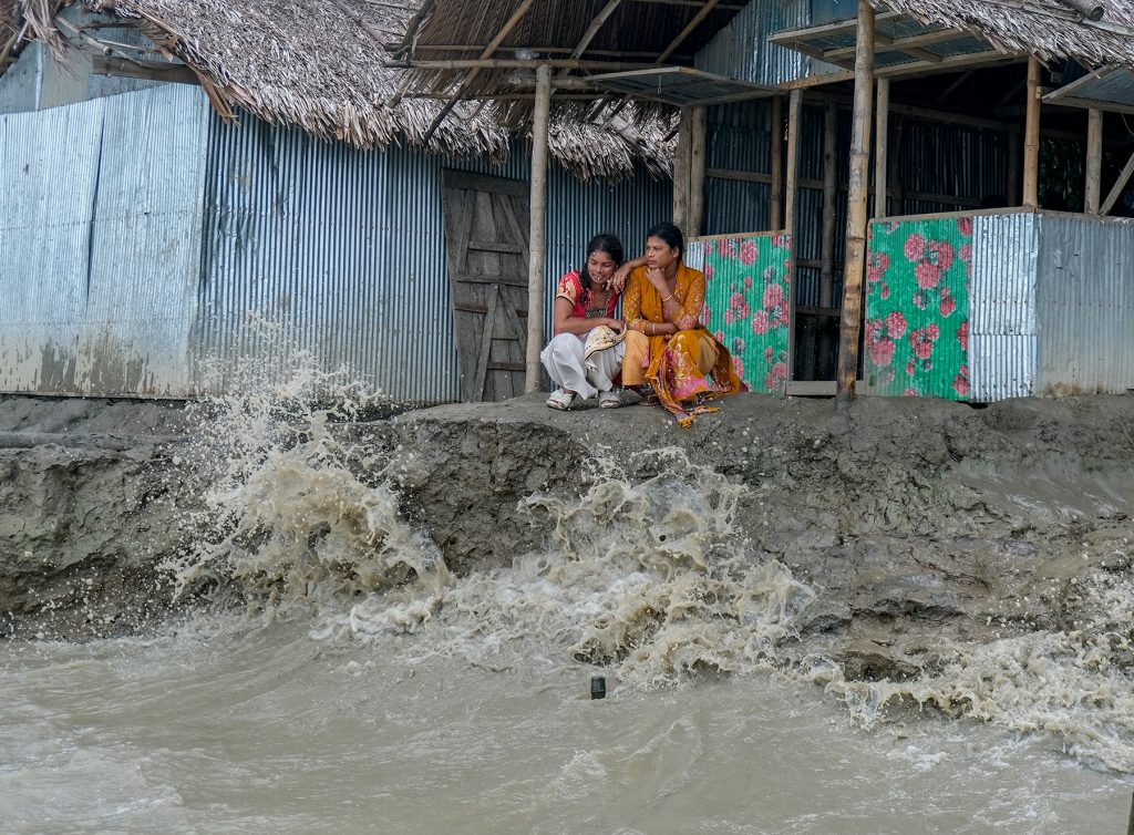 Two sex workers sit inside their broken home on the edge of Banishanta where river erosion steadily swallows land and lives Their fragile shelter mirrors their uncertain future caught between collapsing shorelines and a society that denies them acceptance Shoreline Secret of Baniashanta reveals this intersection of climate change and human rights where survival itself becomes resistance against both natural destruction and social exclusion
