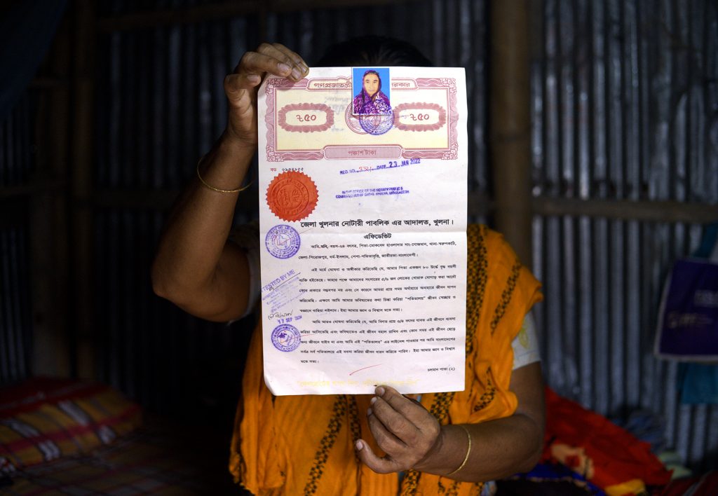 Moni holds her government-issued sex worker license inside her fragile home at Banishanta brothel one of Bangladesh s last legalized red-light districts now threatened by rising tides and social stigma For women here this paper is more than a permit it is recognition of their existence in a society that denies them dignity Shoreline Secret of Baniashanta reveals how climate change and human rights intertwine in lives lived on the margins
