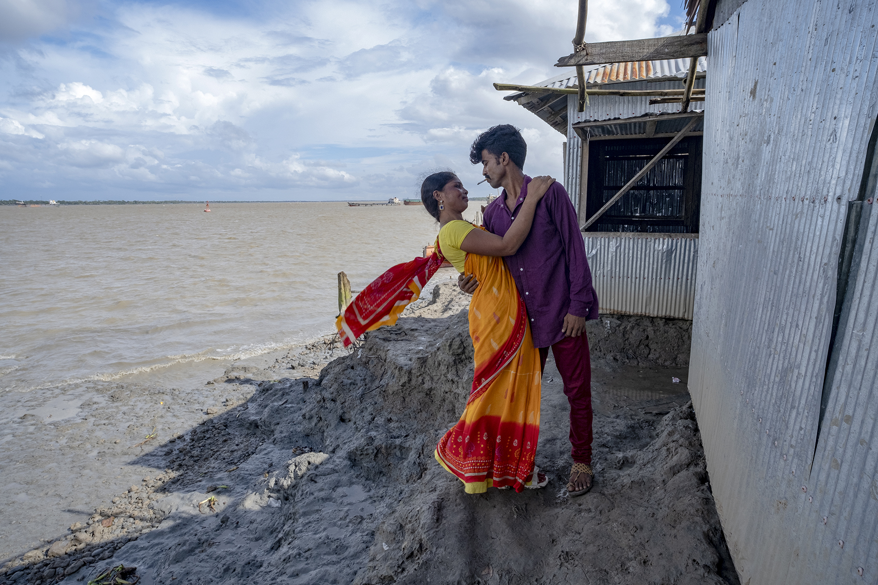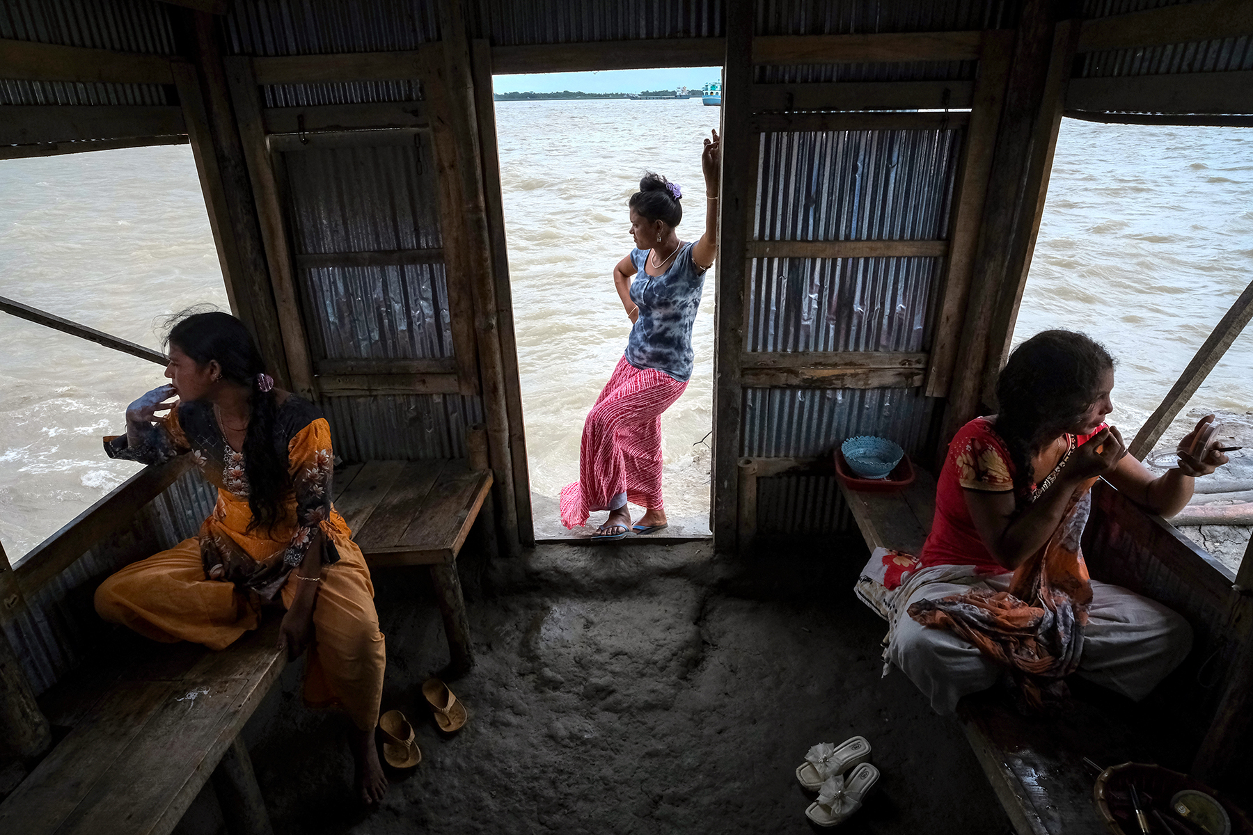 Nodi a sex worker in Banishanta brothel stands beneath the leaking roof during monsoon rain her body drenched yet her eyes closed in a rare moment of stillness For her and others here the rain is both a cleansing touch and a constant threat echoing the fragile lives along eroding shores Shoreline Secret of Baniashanta portrays women s resilience where survival becomes testimony to both climate injustice and human neglect