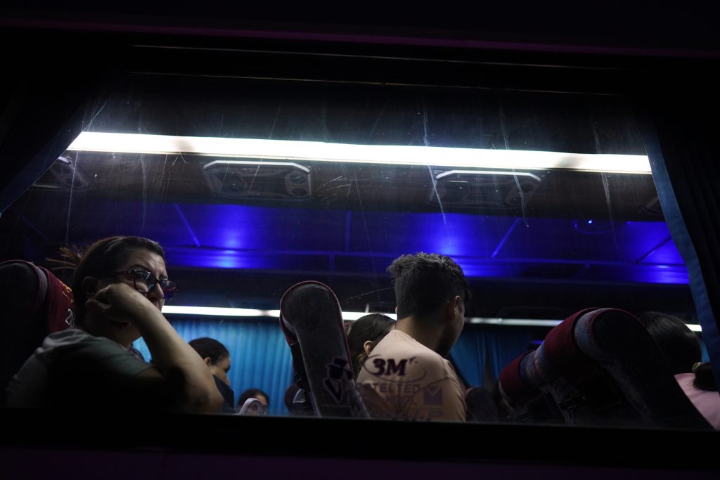 Civilians ride a bus as they leave Sweida after hundreds of Bedouin civilians were evacuated from Syria s predominantly Druze city of Sweida