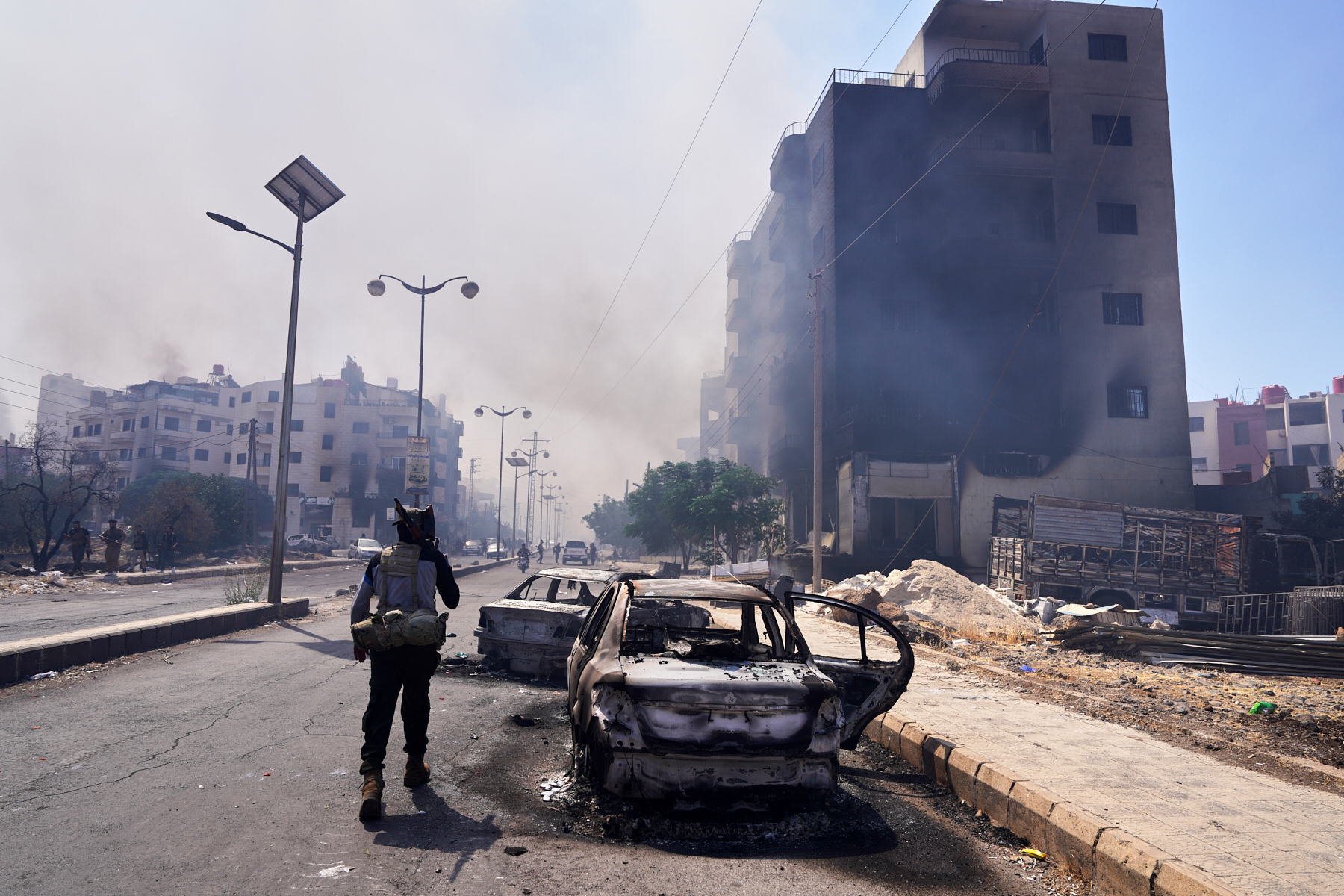 This photographic series follows that abrupt descent from the arrival of armed convoys and tense defensive preparations, through the street battles and visible scars of destruction, to the mass evacuations that revealed the human cost of Suwayda’s sudden war.