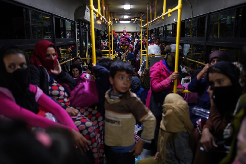 Civilians ride a bus as they leave Sweida after hundreds of Bedouin civilians were evacuated from Syria s predominantly Druze city of Sweida