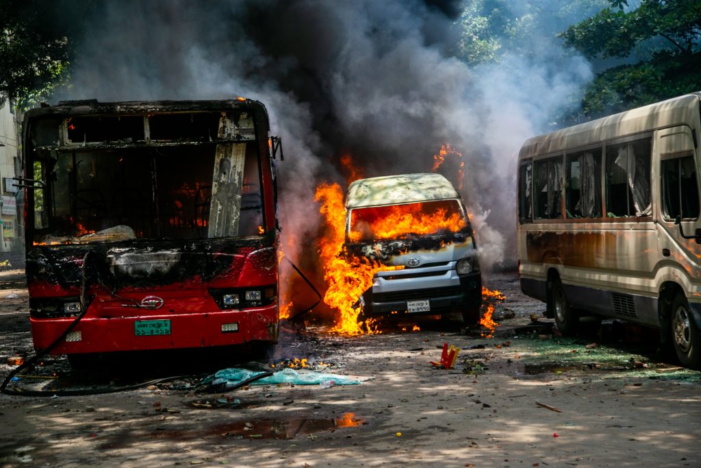 On August 4, Chhatra League miscreants set fire to hospital vehicles in Dhaka.