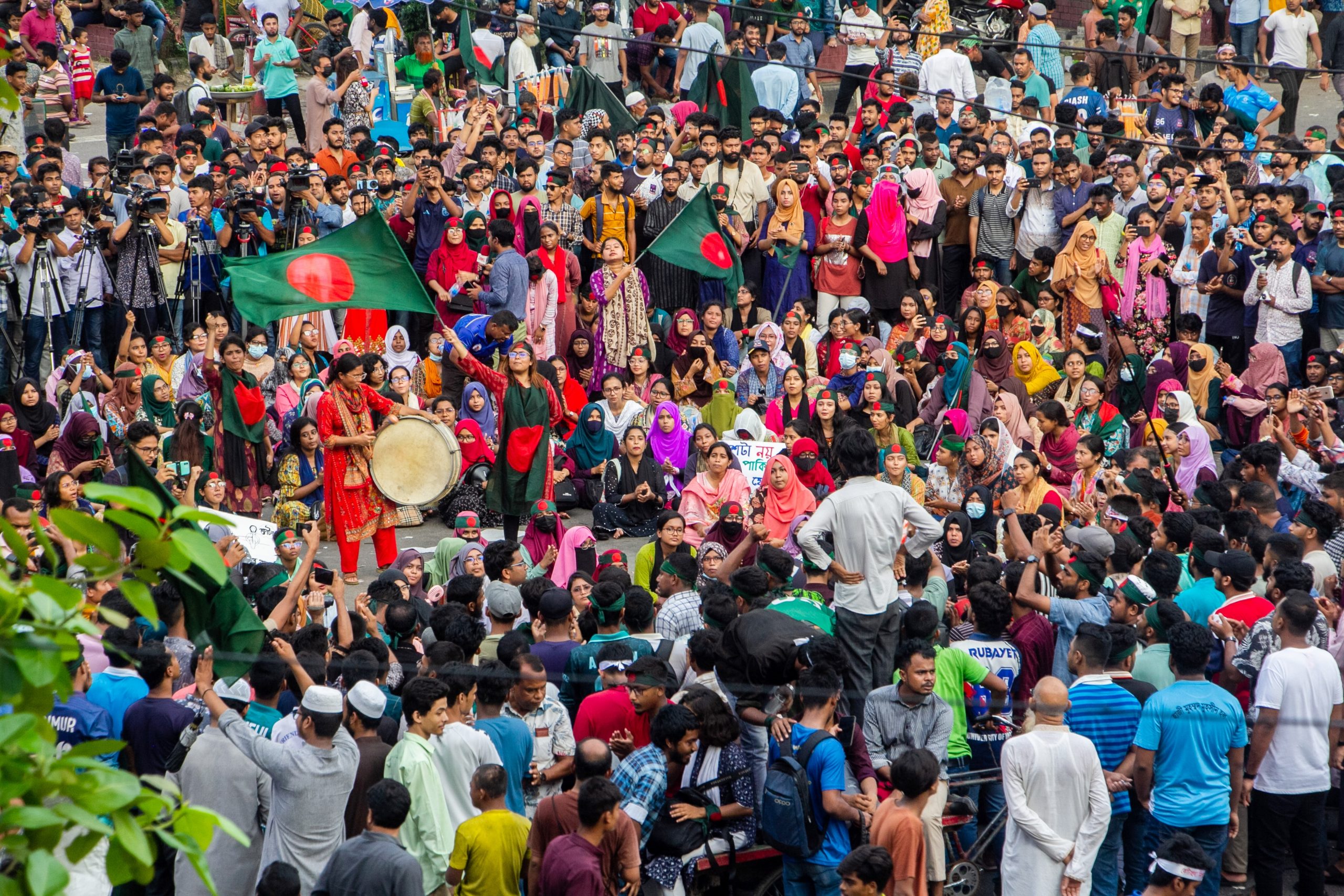 Title: The mass uprising against the dictatorship in Bangladesh and the fall of the dictatorship government took place in 2024.