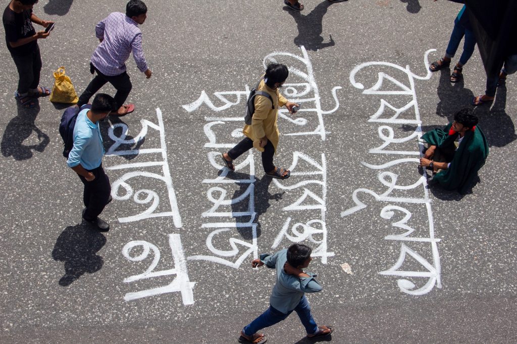 Students write on the streets of Dhaka against discriminatory quotas on July 11