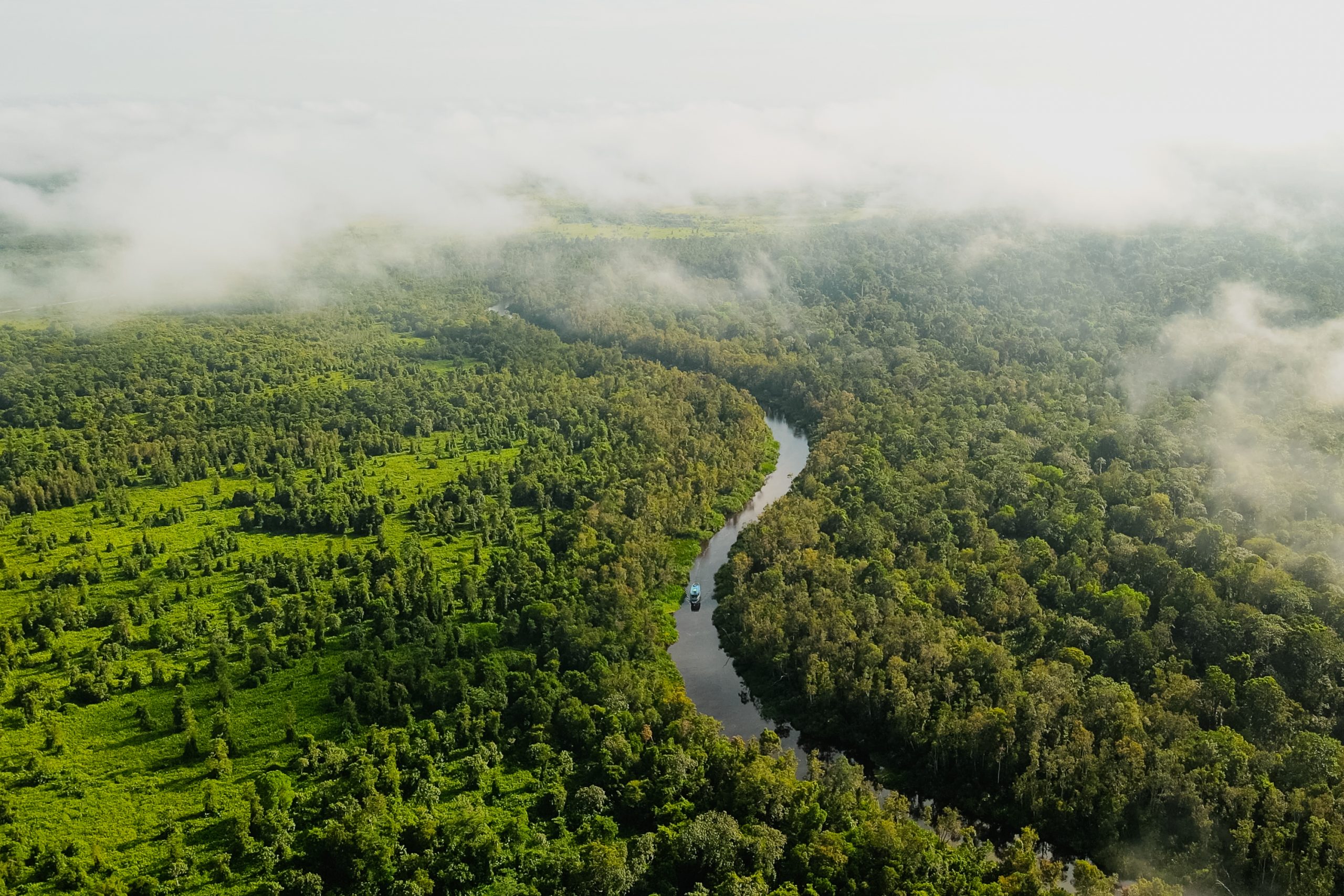 Aerial view of Tanjung Puting National Park Originally a protected area in 1936 and declared a national park in 1996 it became a UNESCO recognized biosphere reserve thanks to efforts like the Orangutan Research and Conservation Project established by Dr Birut Galdikas It is renowned for its large population of critically endangered wild orangutans and serves as a vital location for their conservation and rehabilitation br br Tanjung Puting National Park Central Kalimantan Indonesia