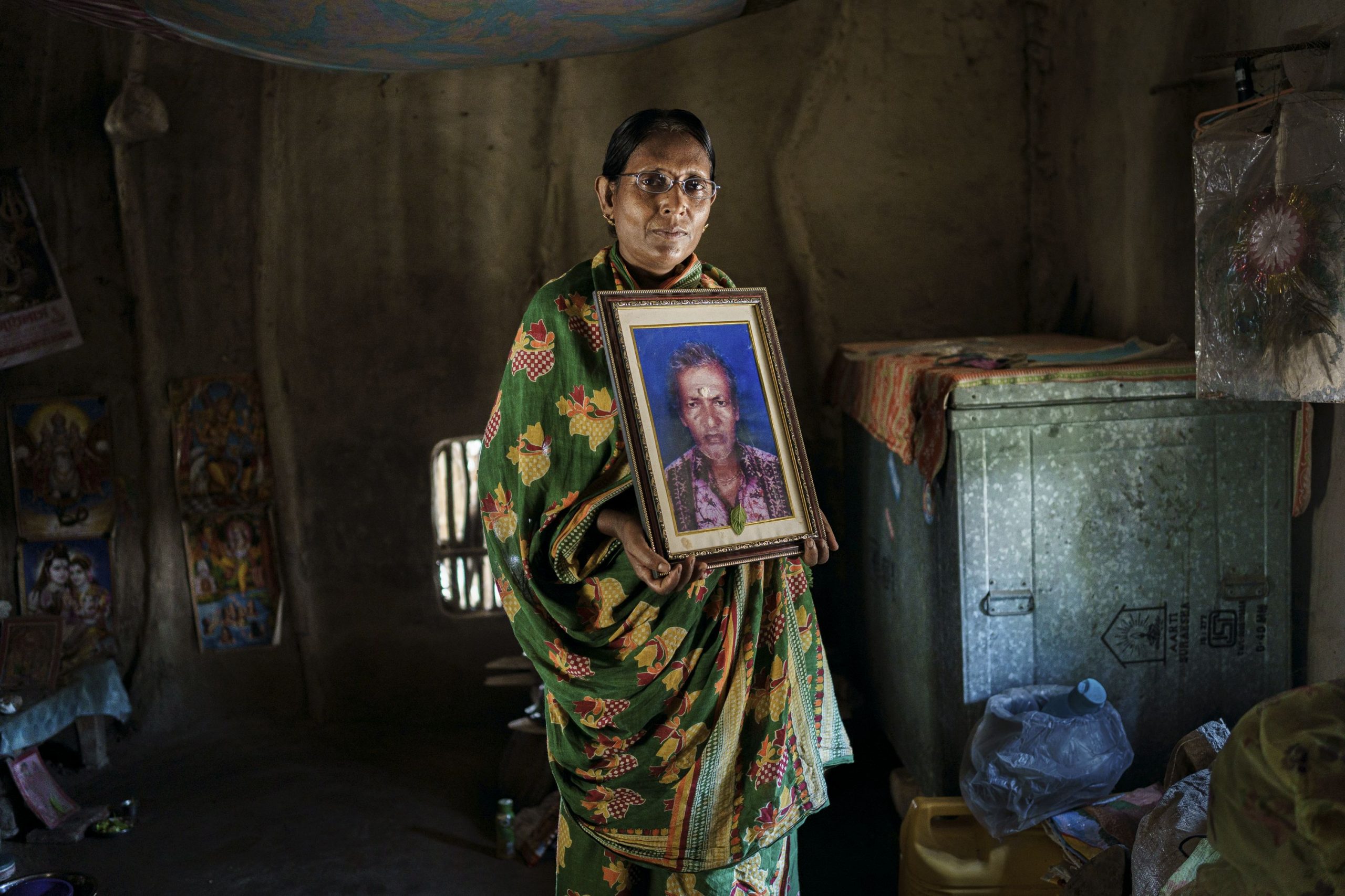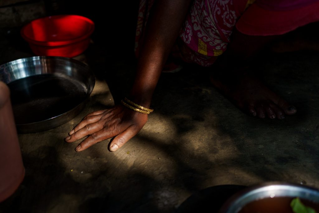 A golden bracelet typically worn by widows is seen on Minoti Mondal whose husband Mrinal who was fatally killed six months earlier in a Bengal tiger attack It is estimated that at least 50 people mostly traditional fishermen die each year from such attacks and many more are injured Widowed women are left trapped in a deep social stigma which makes it very difficult for them to find work or maintain a social life