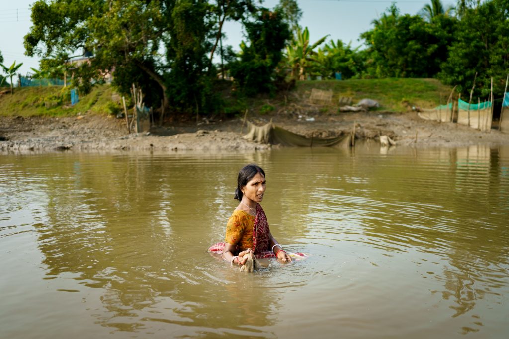 Shuktara Das submerges herself in the brackish waters of the Sundarbans to catch small fish and crabs The effects of climate change in the region especially the rising salinity of the water and increasingly unpredictable and catastrophic cyclones force most women to work odd jobs to sustain their households br br br br br br br br br