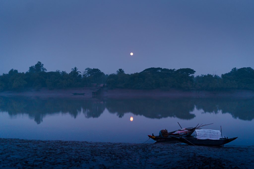 The moon is seen over a creek In what is known as the land of tides the moon is critical part of daily life determining when a channel can be crossed or when the rice can be planted