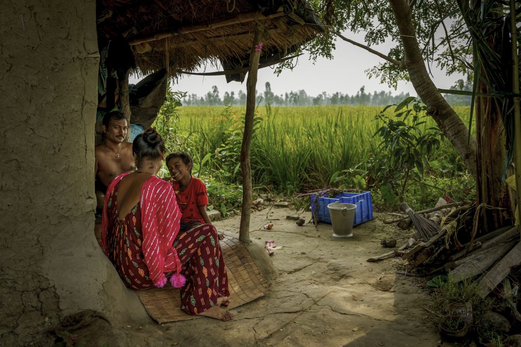 Surojit a local traditional fisherman and farmer spends some time with his family in their mud hut Most of his time is spent in the channels of the surrounding forests fishing risking attacks from wildlife everytim