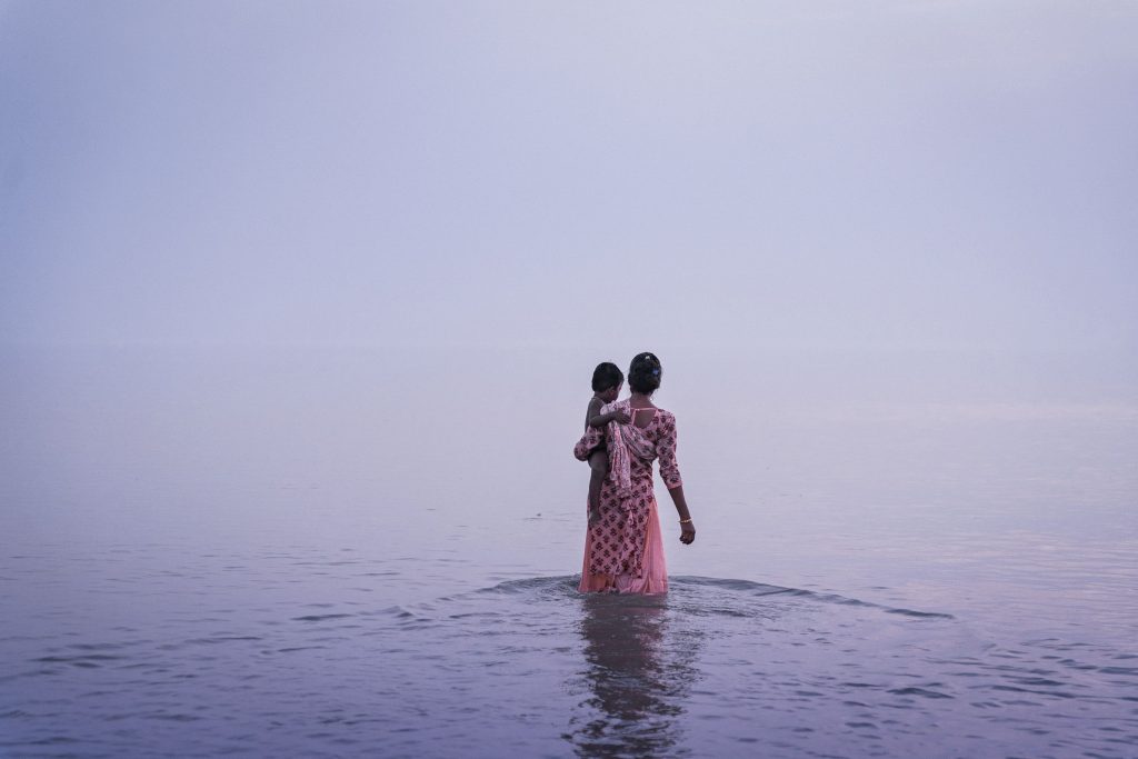 A woman and her child take a bath in the calm waters of the Bay of Bengal Water is a fundamental part of life here but the human factor is transforming it into a threat for the more than 10 million people living in the Sundarbans