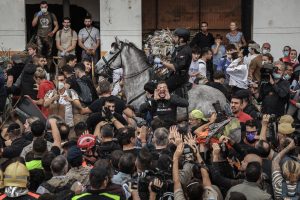 In the midst of this natural disaster and in this tense atmosphere, tension erupted with the visit of the president of the government, Pedro Sánchez, the president of the Valencia region, Carlos Mazón, and King Felipe VI and Queen Letizia to Paiporta, the ground zero of the disaster. Amid boos and insults, neighbours and volunteers threw objects and mud at the political representatives and Spanish royalty.
